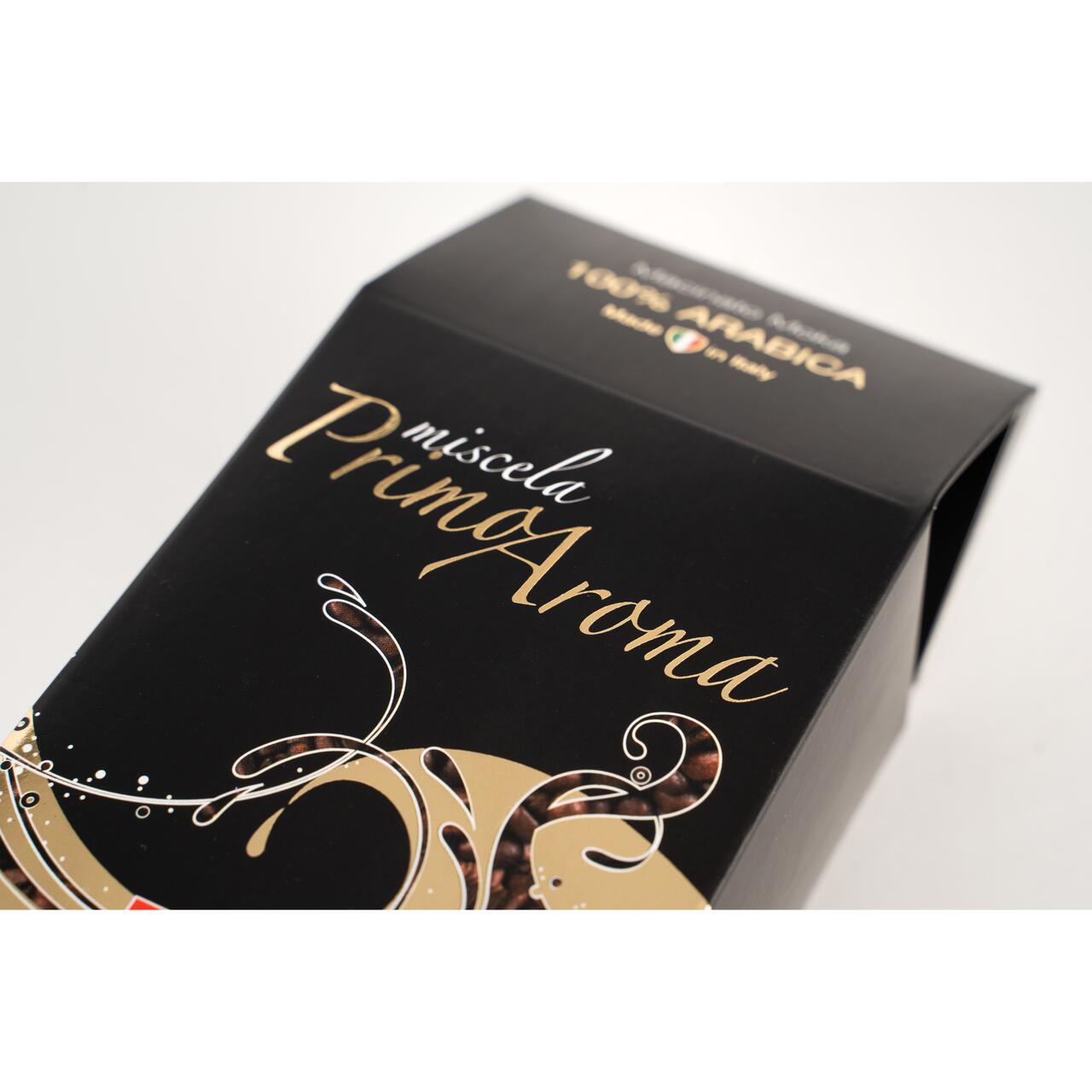 Acest amestec gourmet 100% Arabica a fost inventat cu scopul de a crea acasă o cafea „la fel de bună ca cafeaua de la cafenea”. Produs pentru prepararea cafelei mocha și obținut prin amestecarea celei mai bune băuturi Arabica, Primo Aroma se caracterizează prin aroma sa unică și un gust în care dulceața și aciditatea se îmbină perfect.