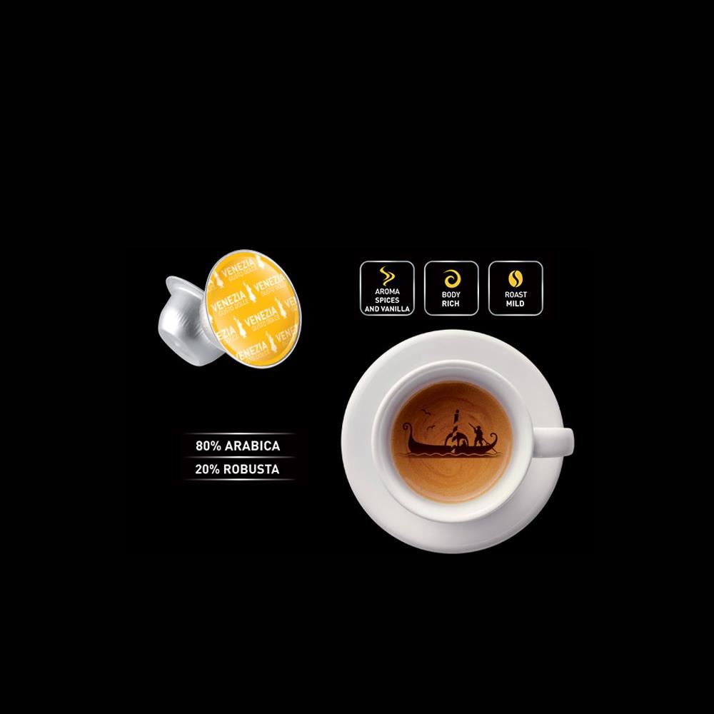 Gustul venețian de cafea espresso presupune un mix de arome delicate, dulci, de vanilie. O tradiție care își are rădăcinile în comertul stravechi al Veneției unde gaseai cele mai bune produse din Orientul Apropiat. O istorie lungă, care i-a convins pe venețieni sa aprecieze amestecul de cafea premium arabica care dezvoltă în mod natural o aroma plăcută de vanilie.