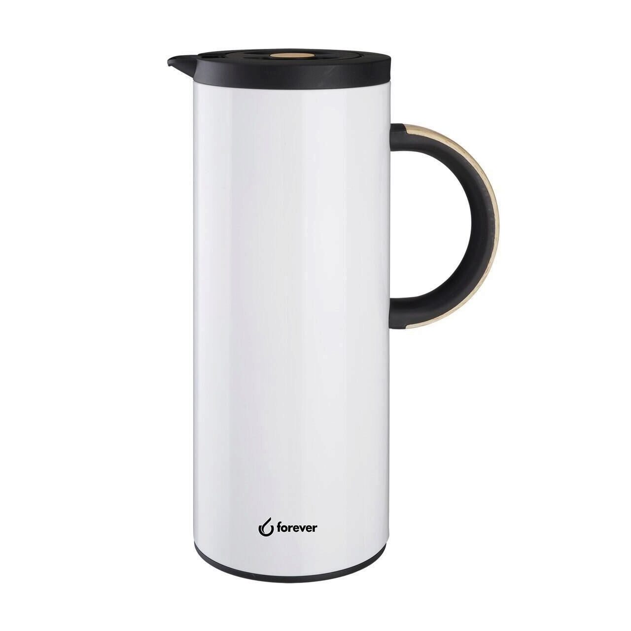 Carafa alba Forever cu capacitatea sa de 1 litru are un design clar, simplu si functional. Carafa cu vid, disponibila și în negru mat, este realizata din oțel inoxidabil și echipata cu o inserție de sticlă. Mânerul și capacul de culoare neagră, cu inserții cu efect de lemn, atrag ochiul suplimentar. Puteți curăța cu ușurință carafa. Daca cafeaua nu se bea imediat, mentine temperatura . Bineînțeles, poți folosi și carafa cu vid avand acest desig stilat pentru alte băuturi calde sau reci.