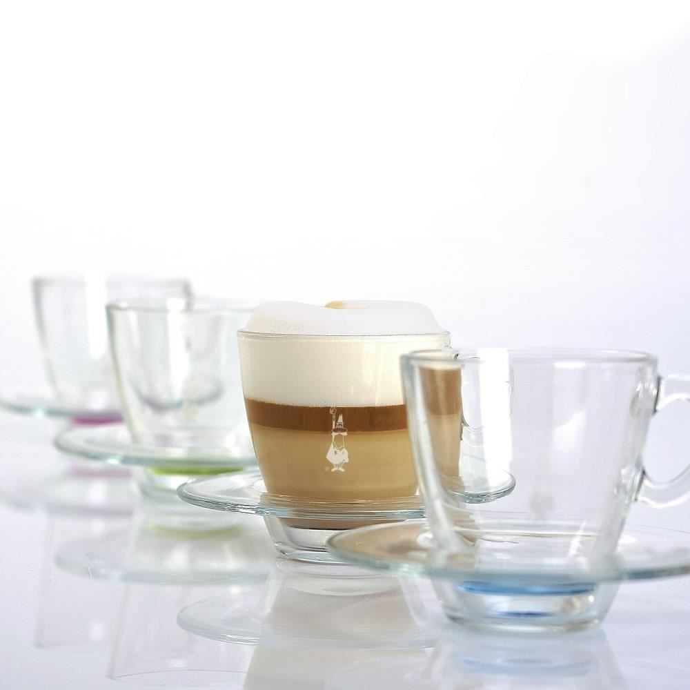 Set compus dintr-o ceasca si o farfurioara pentru cappuccino din sticla securizata. Un set elegant, perfect pentru a savura si cu ochii magia si aroma unui cappuccino autentic, cu o crema densa si persistenta.