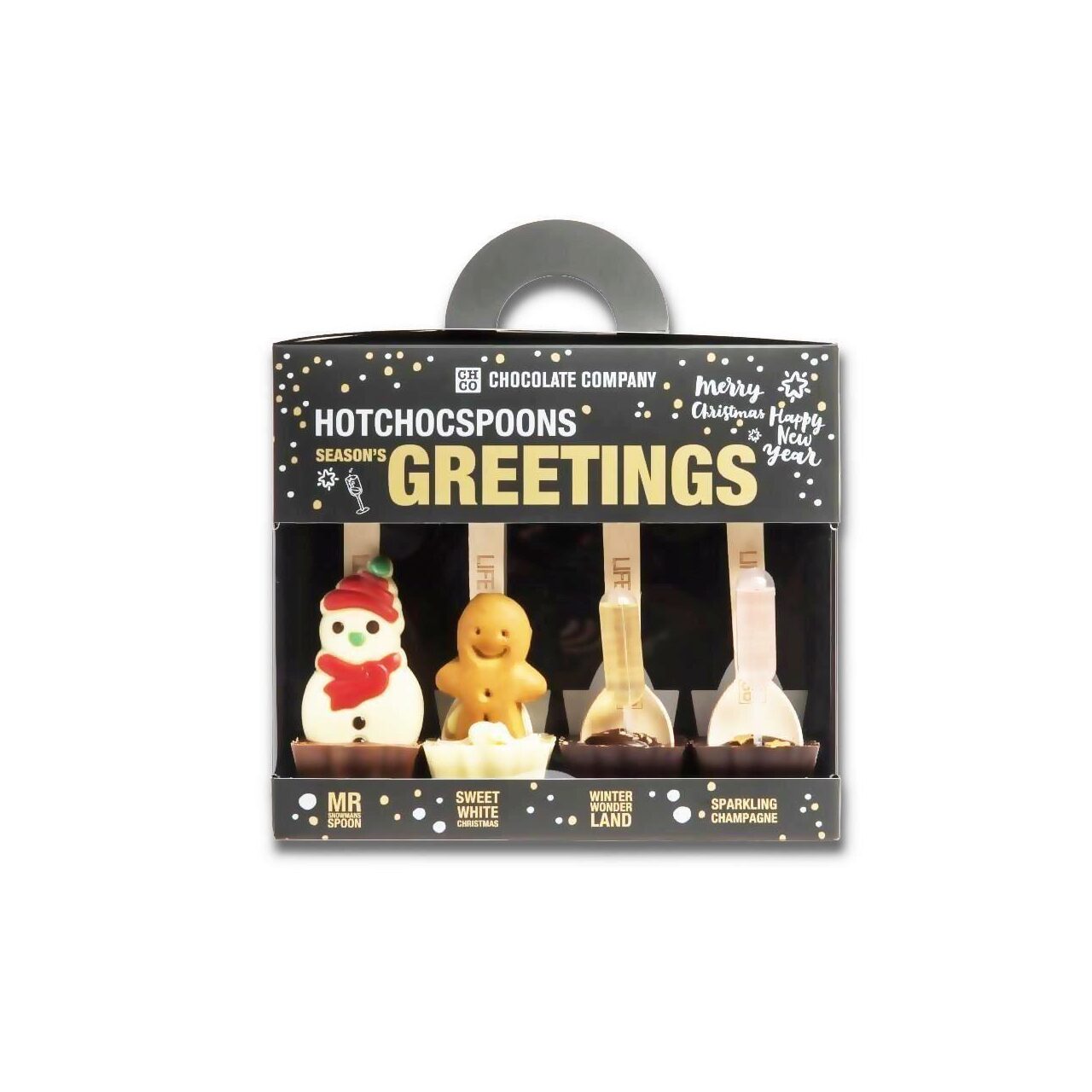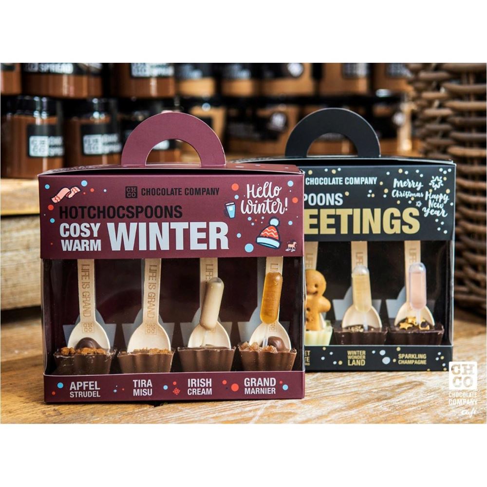 Set 4 ciocolate calde pe lingurita Sarbatori Fericite! Greutate produs 200 g.