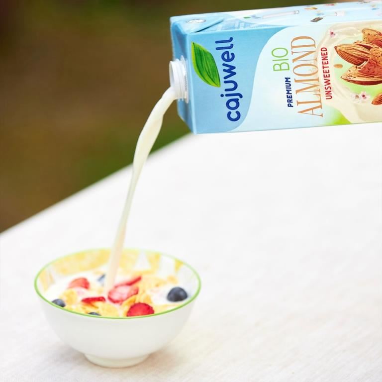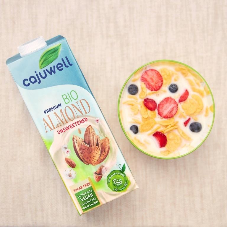 Laptele de Migdale Bio CAJUWELL este un bautura neindulcita pe baza de migdale cu doar 17kcal/100ML.